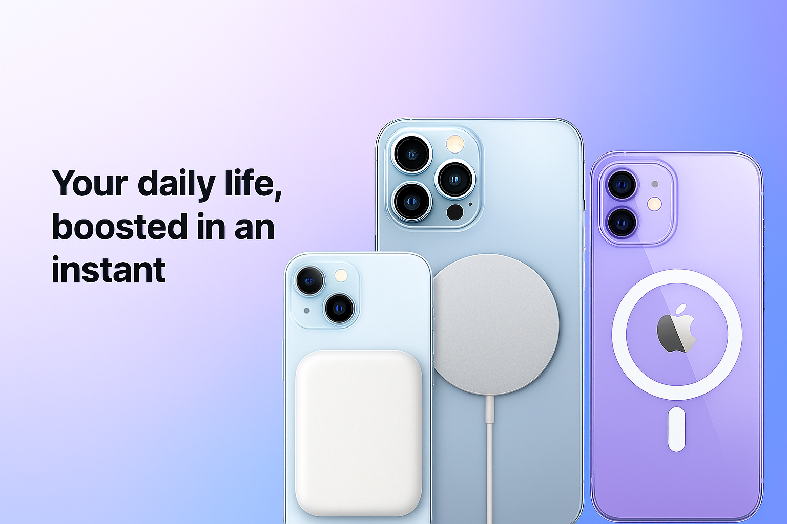 Simplify your daily life with our magnetic accessories: shell, charger and external battery designed for quick, practical and wireless use.